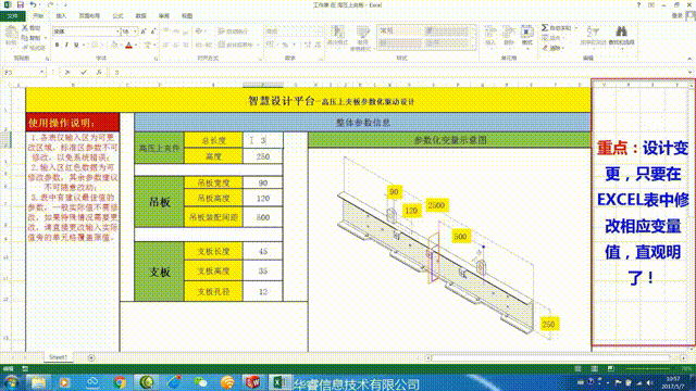 而設(shè)計發(fā)生變更時,只要在EXCEL表格中修改相應(yīng)變量值,直觀明了!